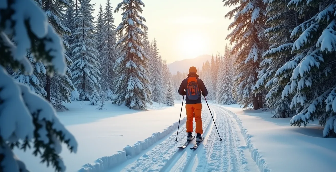 Le choix dépend aussi des conditions. La raquette est imbattable juste après une grosse tempête de neige, dans la poudreuse non damée des sentiers forestiers. Le ski de fond, lui, excelle sur les pistes damées, où la glisse permet de couvrir plus de distance avec une efficacité énergétique supérieure. Pour quelqu’un qui cherche à la fois l’évasion en nature et un entraînement qui sollicite l’ensemble du corps, le ski de fond a un avantage certain. Il développe la force, l’endurance et la coordination de manière harmonieuse.